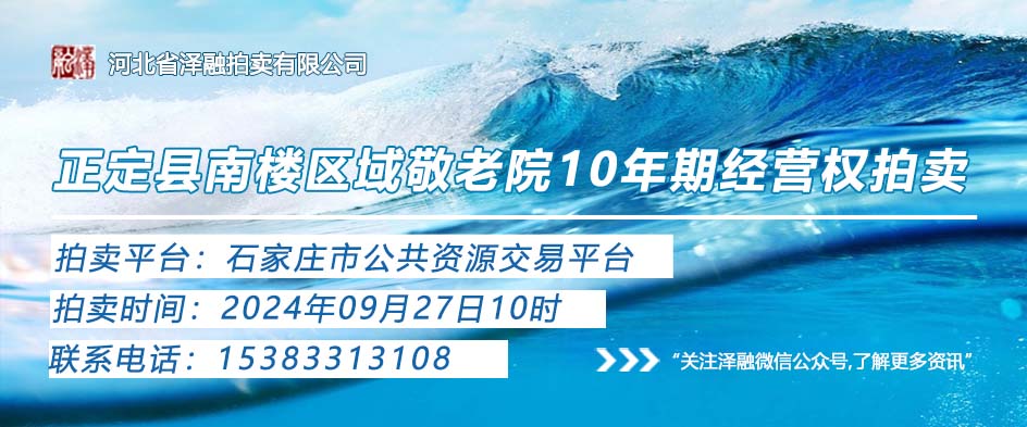 - [拍賣公告]正定縣南樓區(qū)域敬老院10年期經(jīng)營權(quán)拍賣20240927