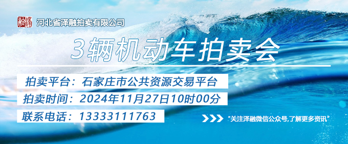 - 機(jī)動車拍賣公告2024年11月27日10時在石家莊公共資源交易網(wǎng)(http://124.239.186.7:8888)公開拍賣3輛機(jī)動車,標(biāo)的具體情況以實(shí)際現(xiàn)狀為準(zhǔn)(拍賣方式為網(wǎng)絡(luò)電子競價),現(xiàn)將有關(guān)情況公告如下:一、標(biāo)的基本情況序號車牌號