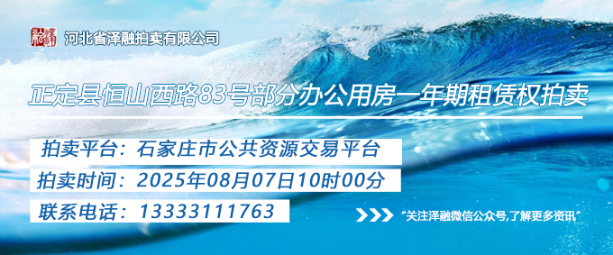 - [拍賣公告]正定縣恒山西路83號部分辦公用房一年期租賃權(quán)拍賣20250807