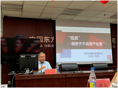 - 中國東方資產(chǎn)管理股份有限公司河北省分公司于2019年05月27日下午,舉行了2019年不良資產(chǎn)業(yè)務(wù)宣介會。我公司董事長蘇建利作為嘉賓在會議中發(fā)言,以“拍賣,服務(wù)于不良資產(chǎn)處置”為主題,分別就“不良資產(chǎn)拍賣的流程”、“如何進行招商推介”、“主要業(yè)務(wù)優(yōu)勢”等…